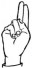 На ћирилици написано ДИМИТРИЈЕ КРГА састоји се из 13 слова [?]. Исписано ћириличном једноручном азбуком за глувонеме: